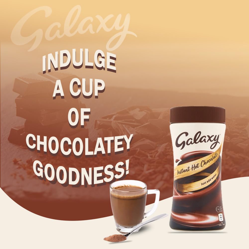 Indulge in the perfect winter treat with our Instant Hot Chocolate Bundles, featuring a delightful duo of Galaxy 250g and Instant Hot Chocolate 225g, conveniently packed together for your enjoyment. Each pack contains 2 luxurious jars, ensuring you have ample supply for cozy evenings or sharing with loved ones. The Galaxy Instant Hot Chocolate is a velvety blend of smooth chocolatey goodness, crafted to tantalize your taste buds with its rich and creamy texture. Made from the finest cocoa beans, it promises a decadent experience with every sip. Complementing this heavenly concoction is the Hot Chocolate, a delightful fusion of malted milk goodness and chocolatey indulgence. Its unique flavor profile offers a delicious twist that will leave you craving more. Whether you're unwinding after a long day, hosting a gathering, or simply treating yourself, our Instant Hot Chocolate Bundles are the perfect choice. Just add hot milk, stir, and enjoy a comforting beverage that brings warmth and joy with every cup.