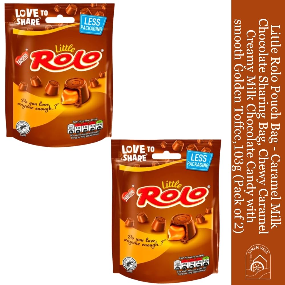 Experience the perfect blend of creamy milk chocolate and luscious golden toffee with this 2-pack of Little Rolo Pouch Bags. Each 103g bag is filled with bite-sized pieces of chewy caramel enrobed in smooth milk chocolate, making it the ideal treat for sharing with friends and family or enjoying on your own. Whether you’re looking for a sweet pick-me-up during the day or a delicious snack for movie nights, these Rolo candies are sure to satisfy your cravings. The convenient pouch bag design makes it easy to reseal and keep your chocolates fresh, ensuring that every bite is as delightful as the last.