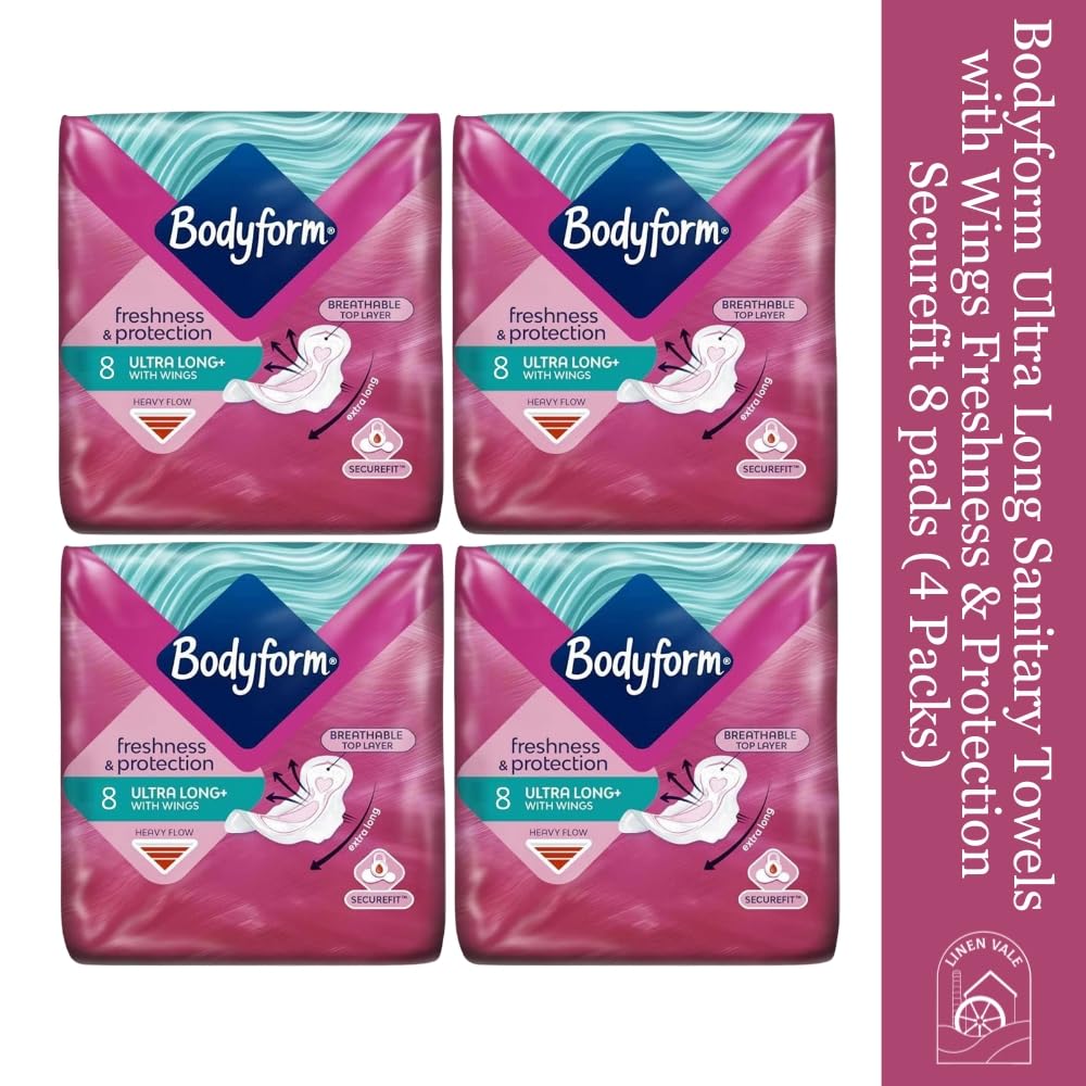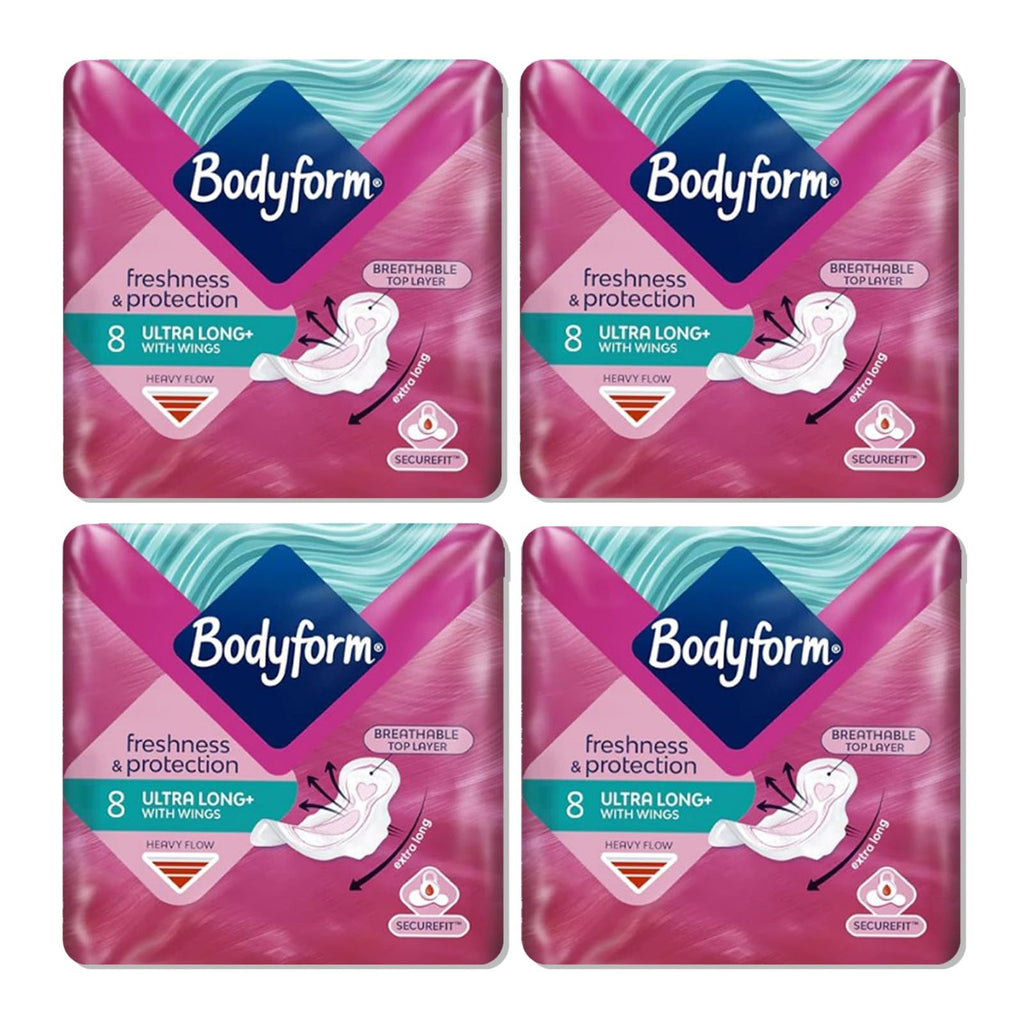 Experience unparalleled comfort and protection during your period with Bodyform Ultra Long Sanitary Towels. Our pack of 4x8 (32 pads) offers you long-lasting freshness and unbeatable protection to keep you feeling confident and secure throughout the day.