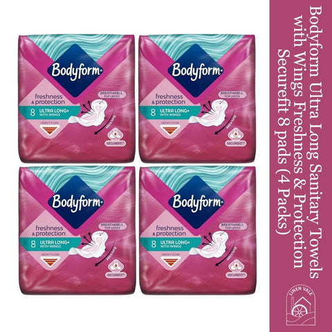 Bodyform Freshness & Protection Ultra Long Sanitary Towels 8 Pads (Pack of 4)