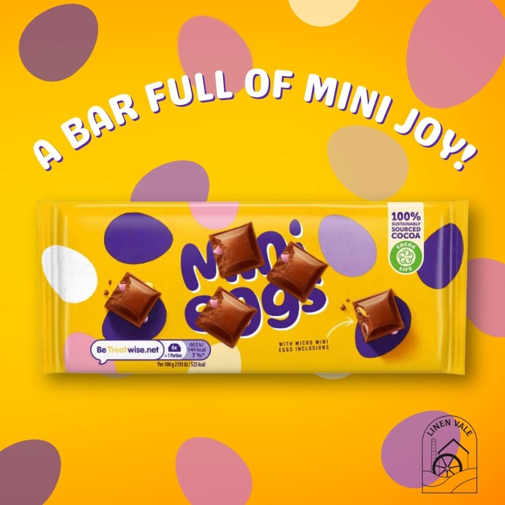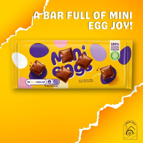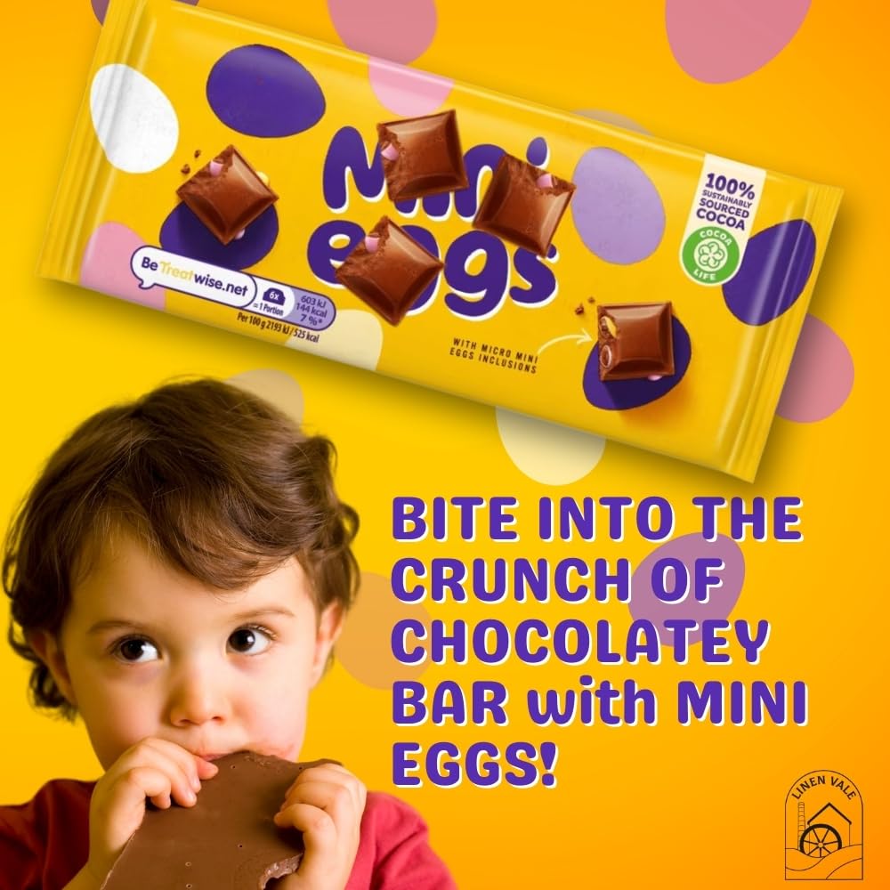 Satisfy your sweet tooth with the irresistible Cadbury Chocolate Bar Tablet with Micro Mini Eggs! This indulgent treat combines the velvety smoothness of Cadbury Dairy Milk chocolate with the delightful crunch of colorful micro mini eggs, creating the perfect balance of creamy and crispy textures.