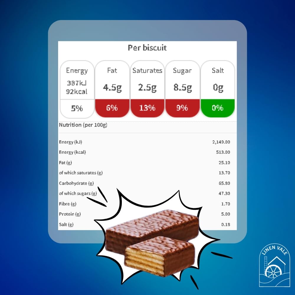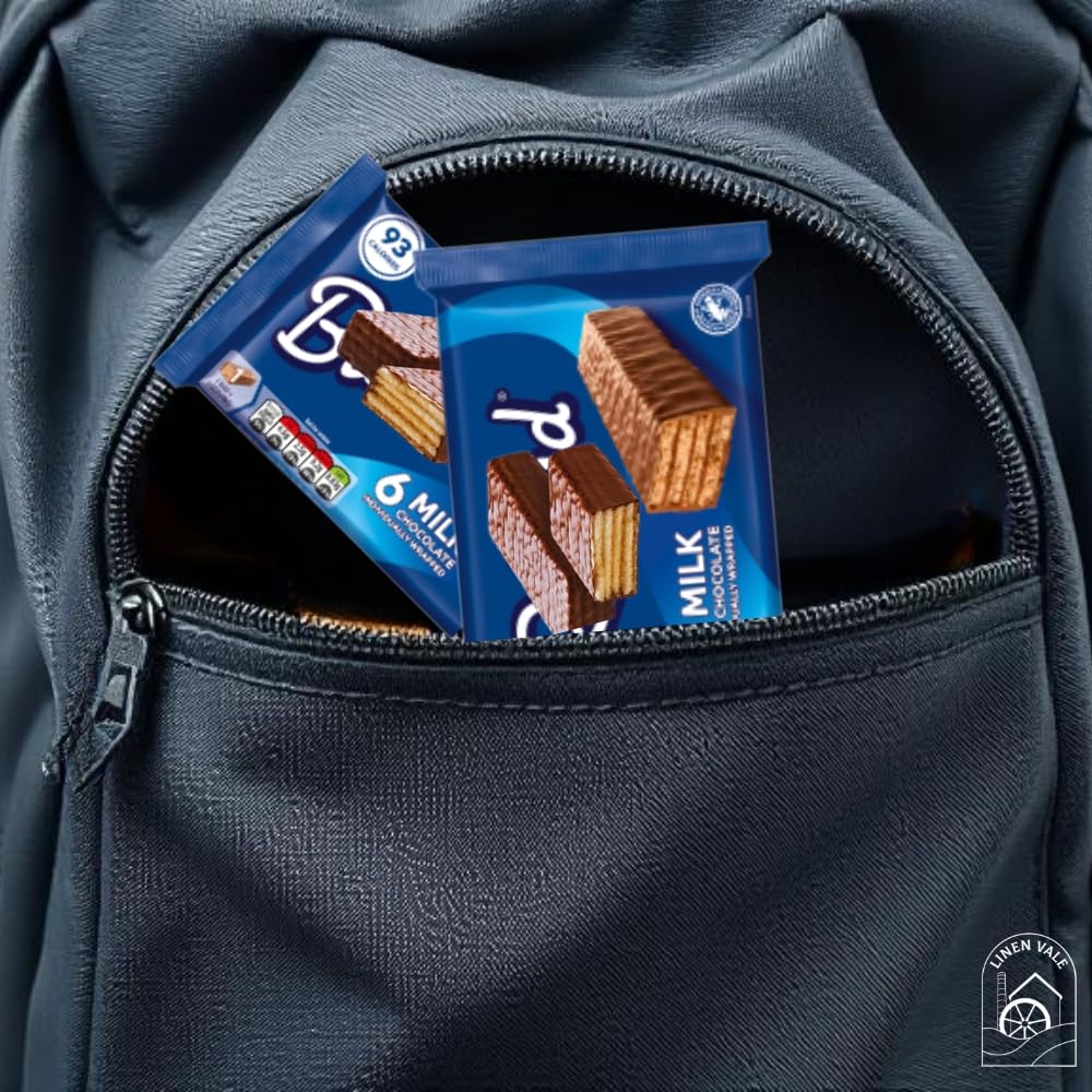 Crispy wafer layers coated in smooth milk chocolate – only 92 calories per bar Looking for a light, satisfying treat you can enjoy any time of day? The BlueRiband Chocolate Wafer Bar Bundle is just the thing. Each bar brings together crisp, airy wafers and a silky milk chocolate coating for that perfect bite – not too heavy, not too sweet, just right. With 3 packs of 6 bars each, you’ll get a total of 18 individually wrapped bars, each weighing 18g. That’s plenty to keep in your desk drawer, kitchen cupboard, or lunchbox – and at just 92 calories per bar, you can feel good about treating yourself.