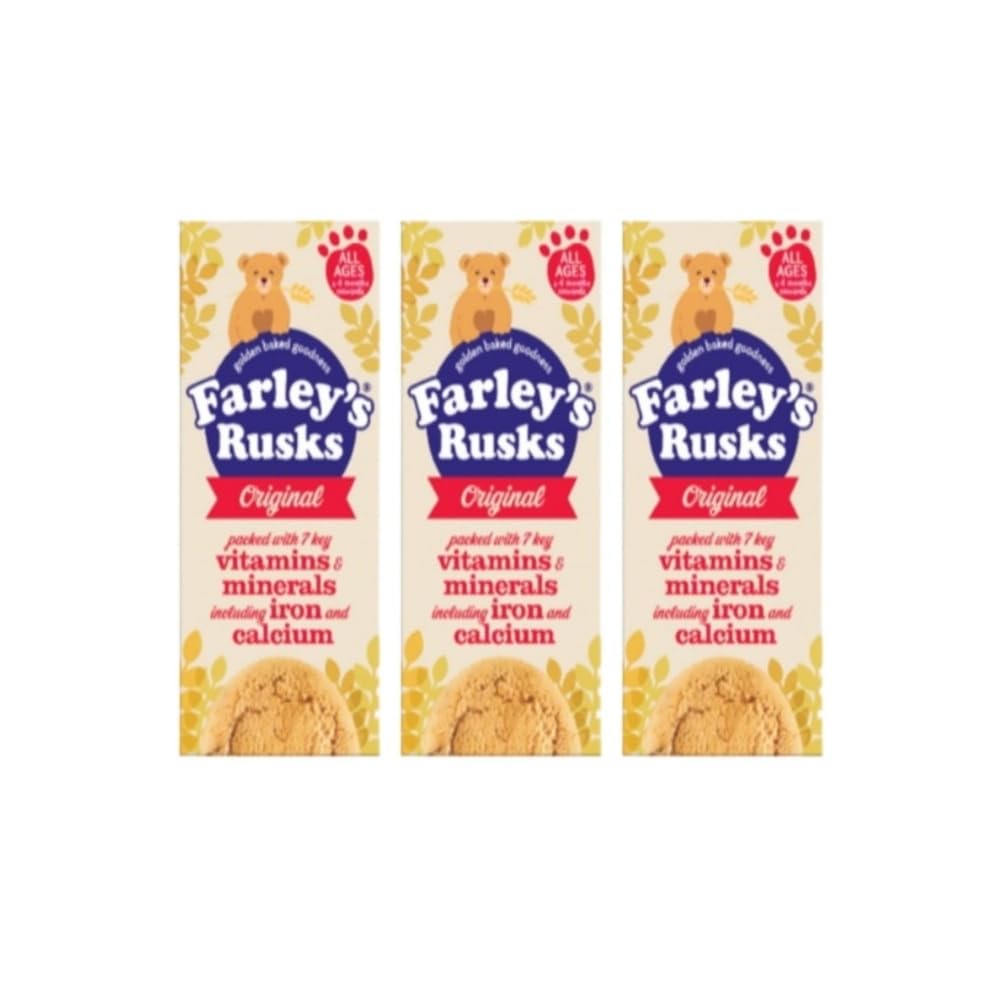 Indulge your little one in the wholesome delight of Farley's Rusks Original, a treasure trove of golden-baked goodness packed with essential nutrients. Specially crafted for babies from 4 months onwards, each pack contains 9 pieces of nutritious baby cookies, making it a perfect addition to your child's daily diet. Farley's Rusks Original are enriched with a bounty of vitamins and minerals, including iron and calcium, crucial for your baby's growth and development. The delectable blend of ingredients ensures a delightful taste that your little explorer will love, making snack time a delightful adventure. These rusks are expertly baked to a golden perfection, ensuring a crunchy texture that babies adore. Whether as a teething aid or a delicious treat, Farley's Rusks Original are a trusted choice among parents for generations. Nourish your baby with the goodness of Farley's Rusks Original, a nutritious and delicious snack that supports their journey to a healthy future. Grab this value pack of 3 packs, each containing 9 pieces of golden-baked goodness, and watch your little one smile with every wholesome bite.