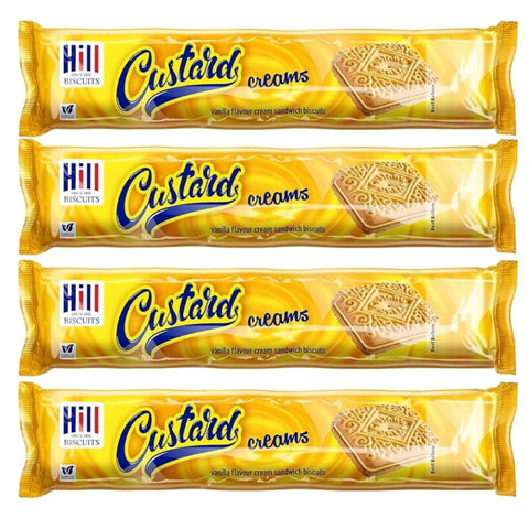Hill Custard Vanilla Flavour Cream Sandwich Biscuits 150g x Pack of 4