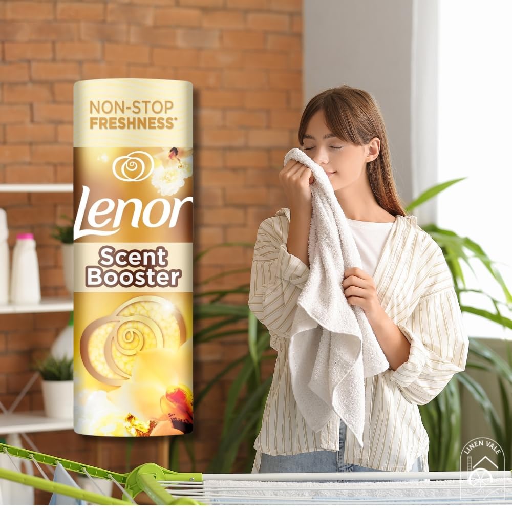 Transform your laundry with Laundry Perfume In-Wash Scent Booster in Summer Breeze and Gold Orchid fragrances. This duo pack of 176g each provides long-lasting freshness, making your clothes smell irresistibly clean for weeks. Infused with signature scent technology, these boosters are designed to enhance the fragrance of your detergent, giving your garments a burst of invigorating freshness with every wash. Simply add the beads directly into the drum before each wash for a luxurious and fragrant laundry experience. Perfect for all types of fabrics, Scent Boosters keep your clothes smelling fresh from wash to wear. Enjoy the uplifting floral notes of Summer Breeze or the creamy, elegant touch of Gold Orchid – or combine them for a unique scent sensation.