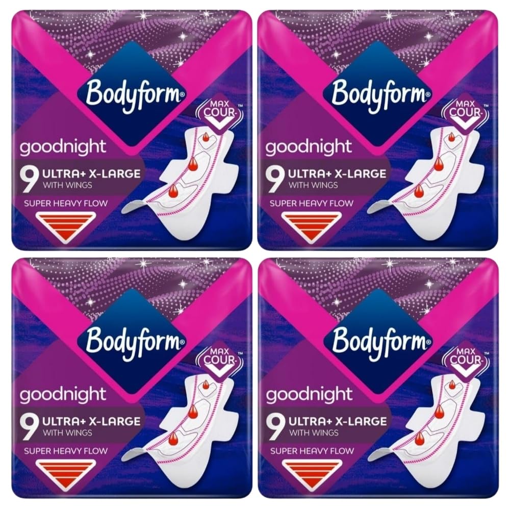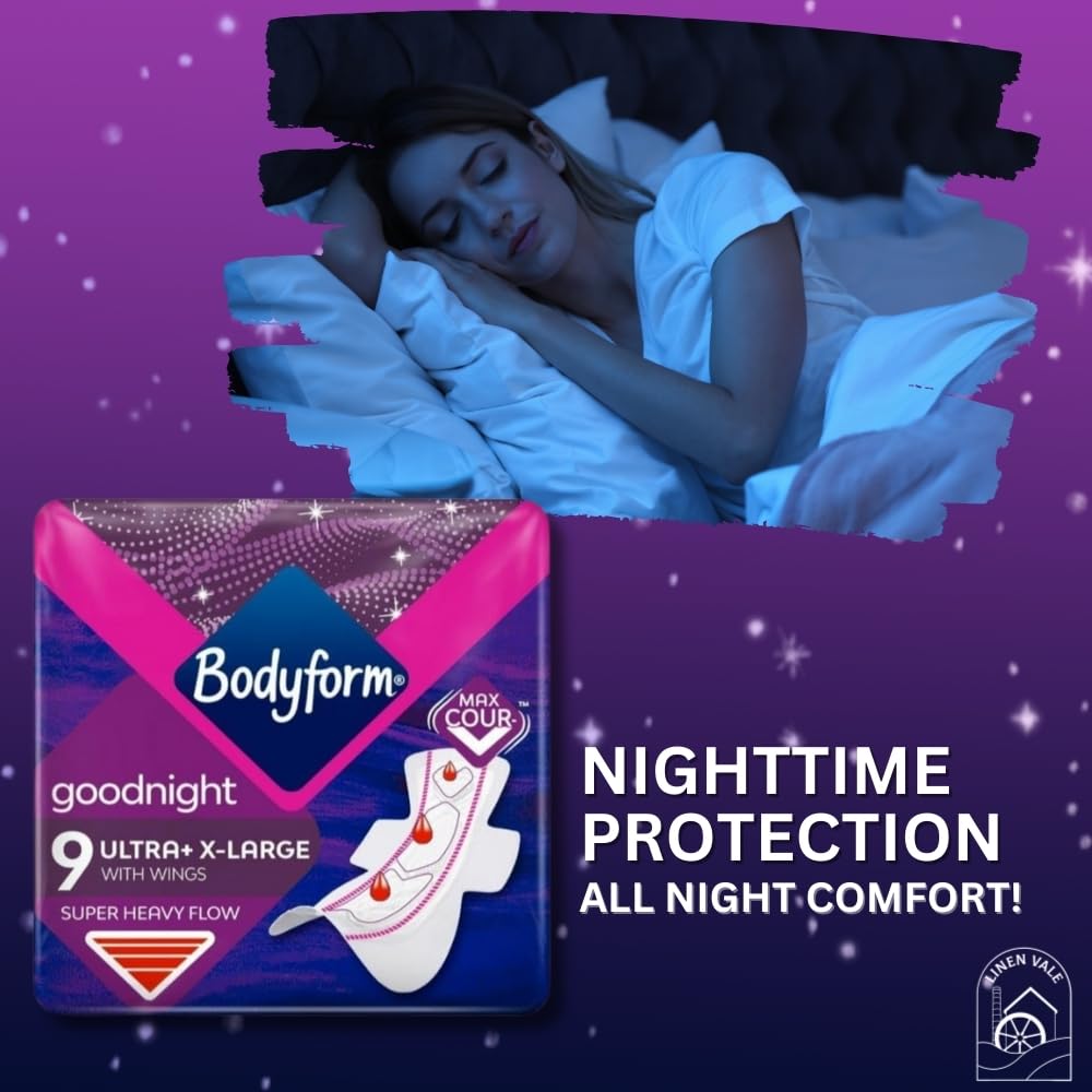 Linenvale Bodyform Goodnight Ultra Extra Large Pads with Wings Pack of 4x9 (36 Pads)