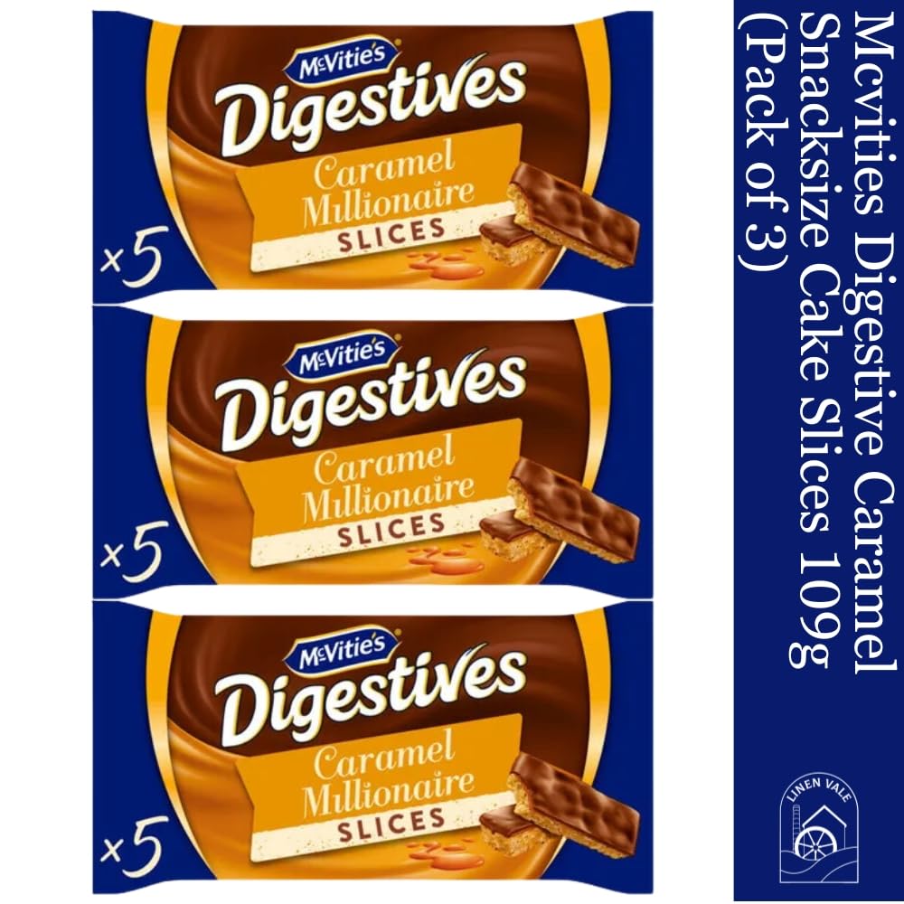 Indulge in the delightful combination of McVitie's Digestive biscuits and a rich caramel layer with these McVitie's Digestive Caramel Snacksize Slices. Each slice is crafted with McVitie's signature whole wheat digestive base, topped with a luscious layer of smooth caramel. Perfectly portioned into snack-sized slices, this treat is ideal for a quick pick-me-up during your busy day or a sweet accompaniment to your afternoon tea.